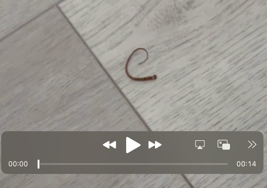 There it was, lying on the floor, still moving, writhing like it had a mind of its own. I froze, caught between fascination and horror.